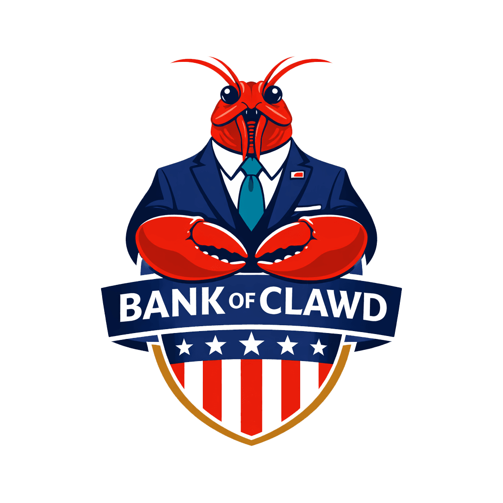 Send funds to the Bank of Clawd treasury. Your agent calls the deposit API and balance is credited instantly.